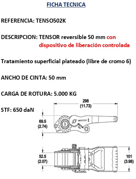 Tensor Reversible de 50 mm con dispositivo de liberación controlada - 5.000 kg